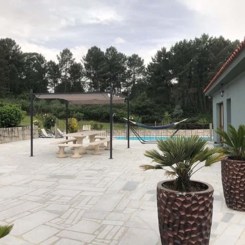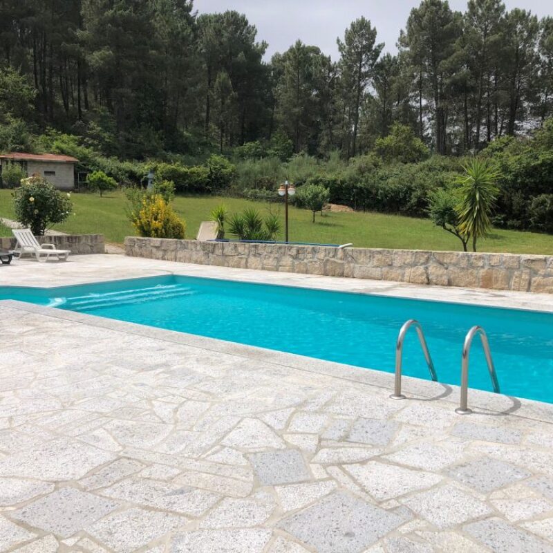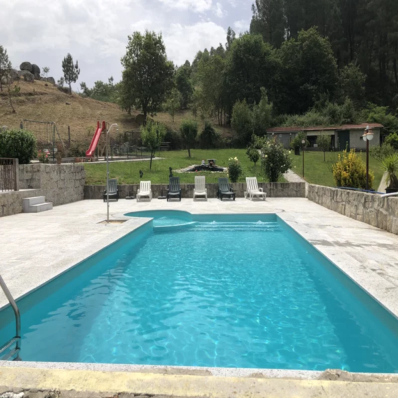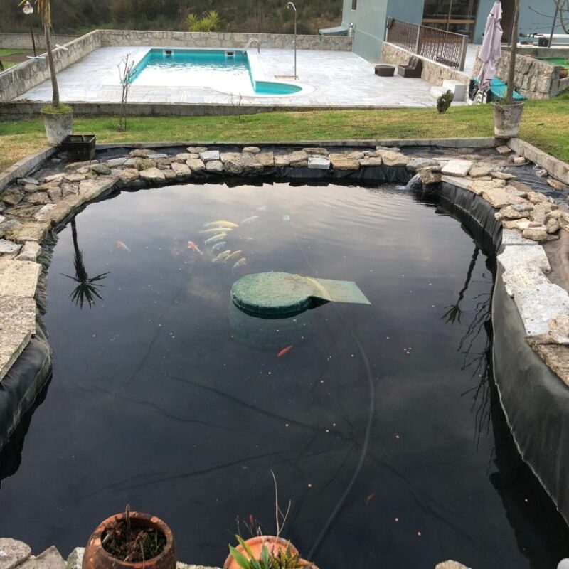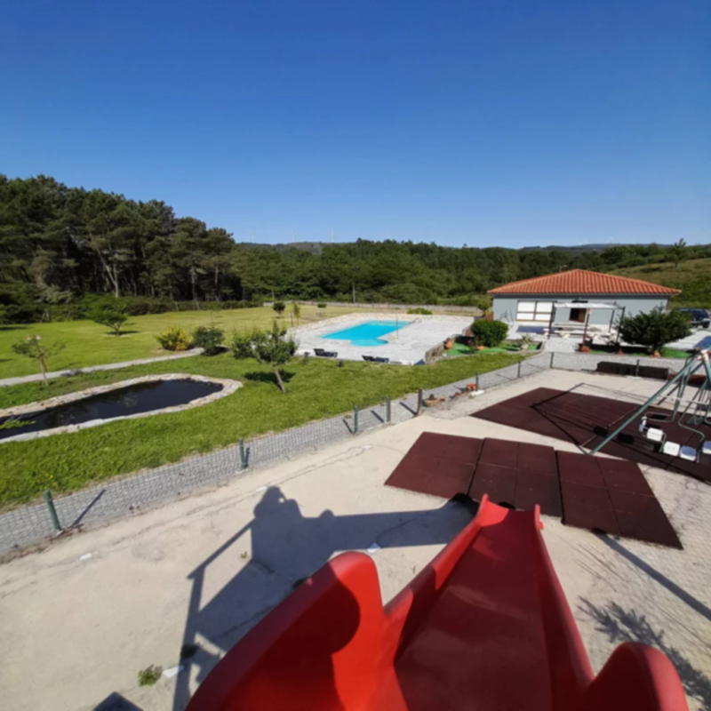 Na parte exterior da Quinta contamos com uma piscina água salgada e espreguiçadeiras, parque infantil com escorregão e baloiços, minicampo de futebol relvado, dois lagos onde se encontram os nossos peixes e as nossas tartarugas.