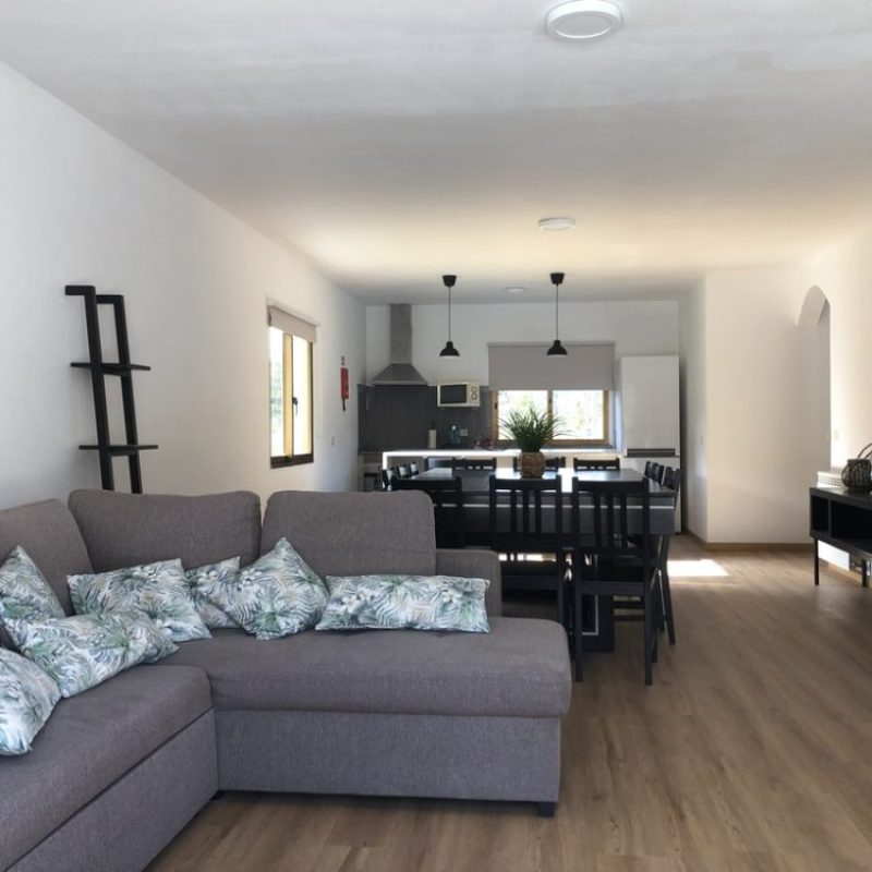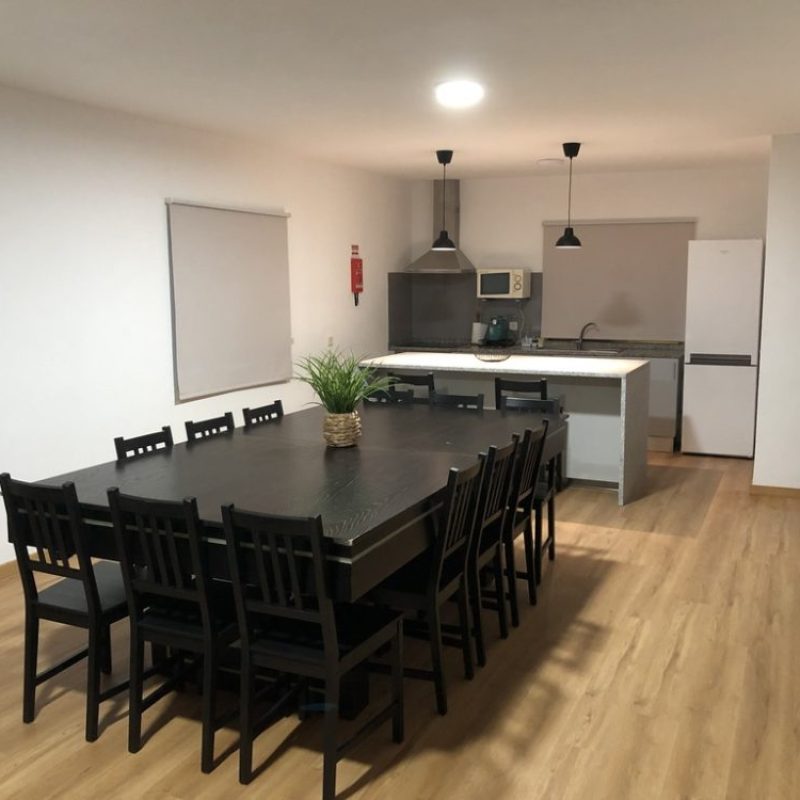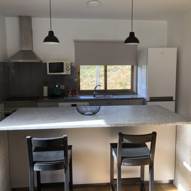 Dispomos de 5 quartos, 5 WC, sala e cozinha (Open space) com placa vitrocerâmica, forno, microondas, torradeira, combinado, maquina de café, maquina lavar loiça e roupa.